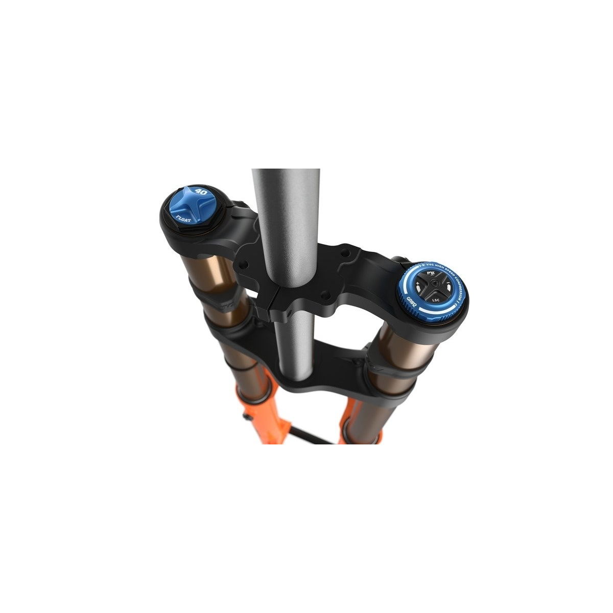 Fox Spezifikation: 2023_22 40 K FLOAT 27.5in F-S 203 Grip 2 HSC LSC HSR LSR Shiny Blk Orange/Gloss Blk Logo 20TAx110 1.125 Flat 48mm Rake Matte Blk AM