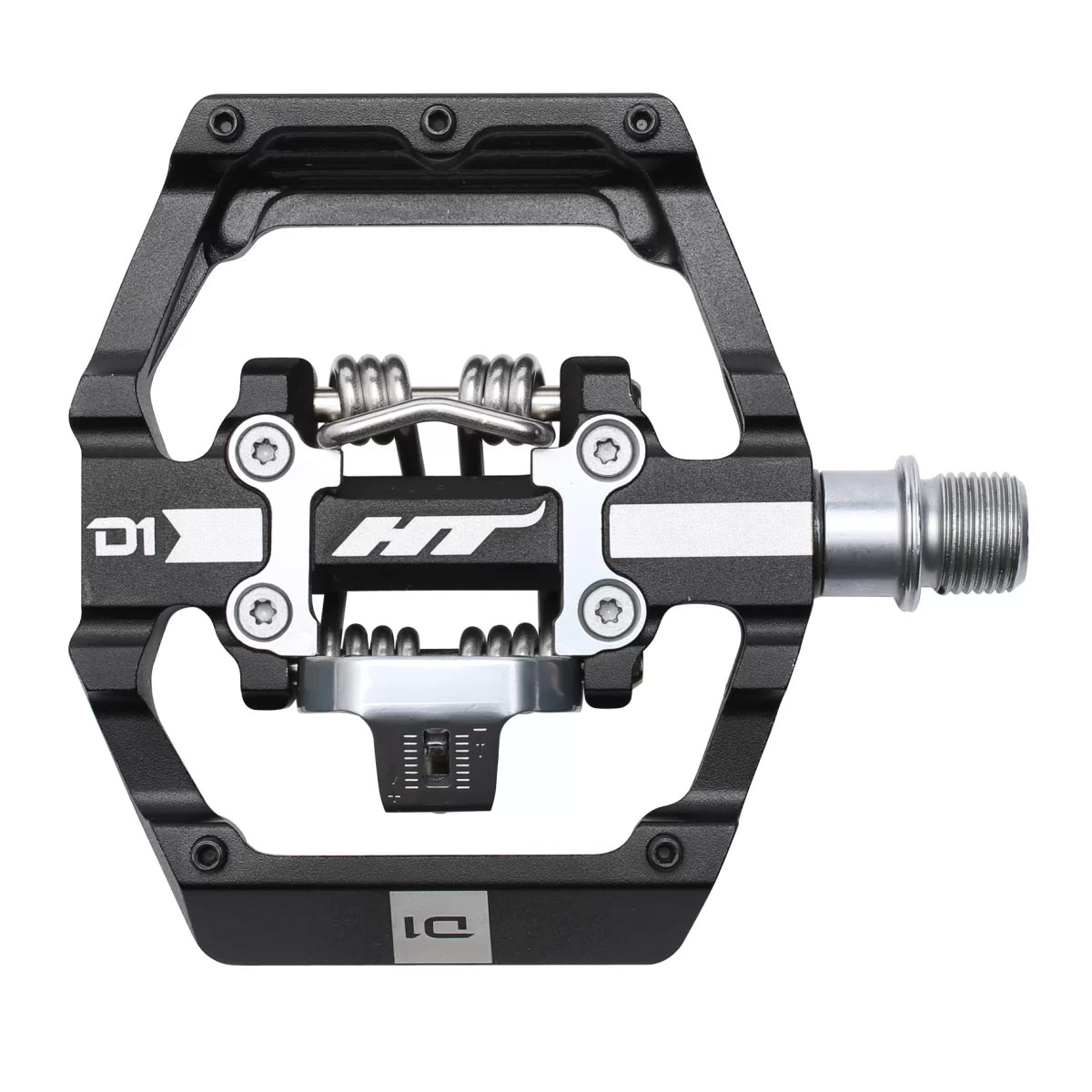Das D1 ist ein Systempedal welches als Klickpedal für Race-Einsätze und gleichezeitig Flatpedal für Freeride-Einsätze. Diese Pedale sind so konzipiert, dass sie leicht und langlebig sind und gleichzeitig optimalen Grip und Kraftübertragung auf den Antrieb bieten. Sie verfügen über ein Doppellagersystem, das einen reibungslosen und zuverlässigen Betrieb ermöglicht. Das offene Design hilft Schlammablagerungen zu verhindern und das Klicksystem offen zu halten. Brauchst du aber die Vorzüge eines Plattformpedals, wechselst du einfach die Seite.
