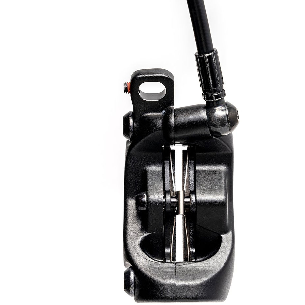 Der neue Hebel der Dominion kommt robust daher und die Hebelweite lässt sich werkzeuglos verstellen. Mittels einer 2-mm-Madenschraube lässt sich die Position der Bremszange an der Bremsverschraubung anpassen. Die Verschraubung findet mit der Matchmaker-Technologie von SRAM statt, es gibt aber auch ein Adapter für Shimanos I-Spec 2-Befestigung.
