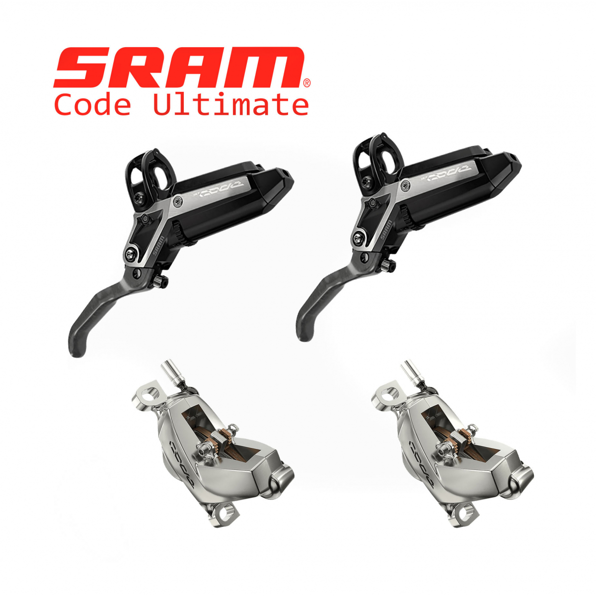 Lieferumfang: 2x SRAM CODE Ultimate Stealth für Vorn/Hinten kpl. mit Bremsbelägen